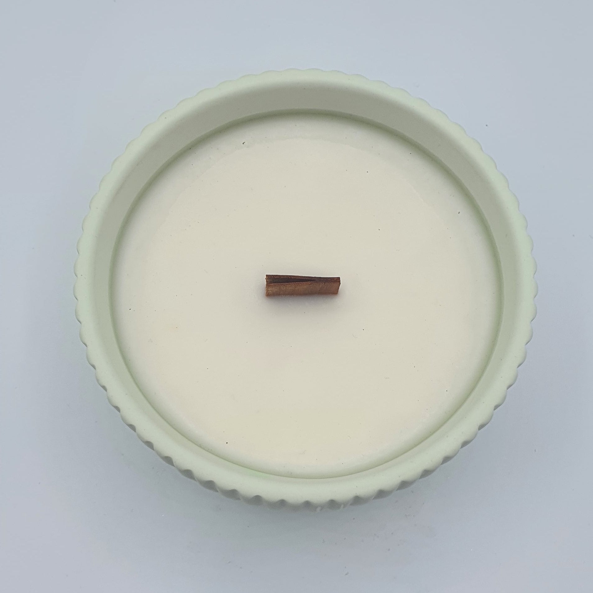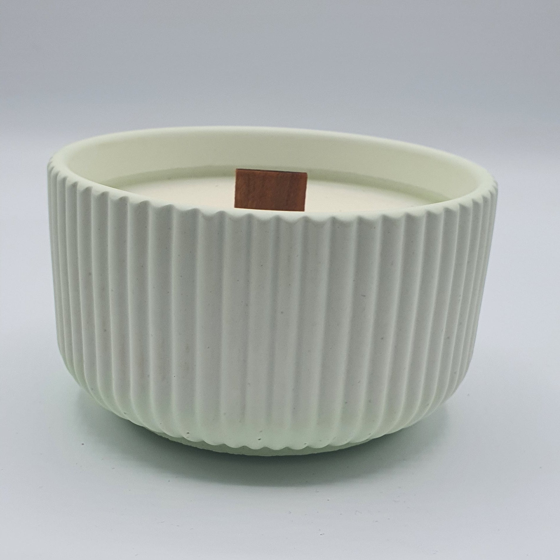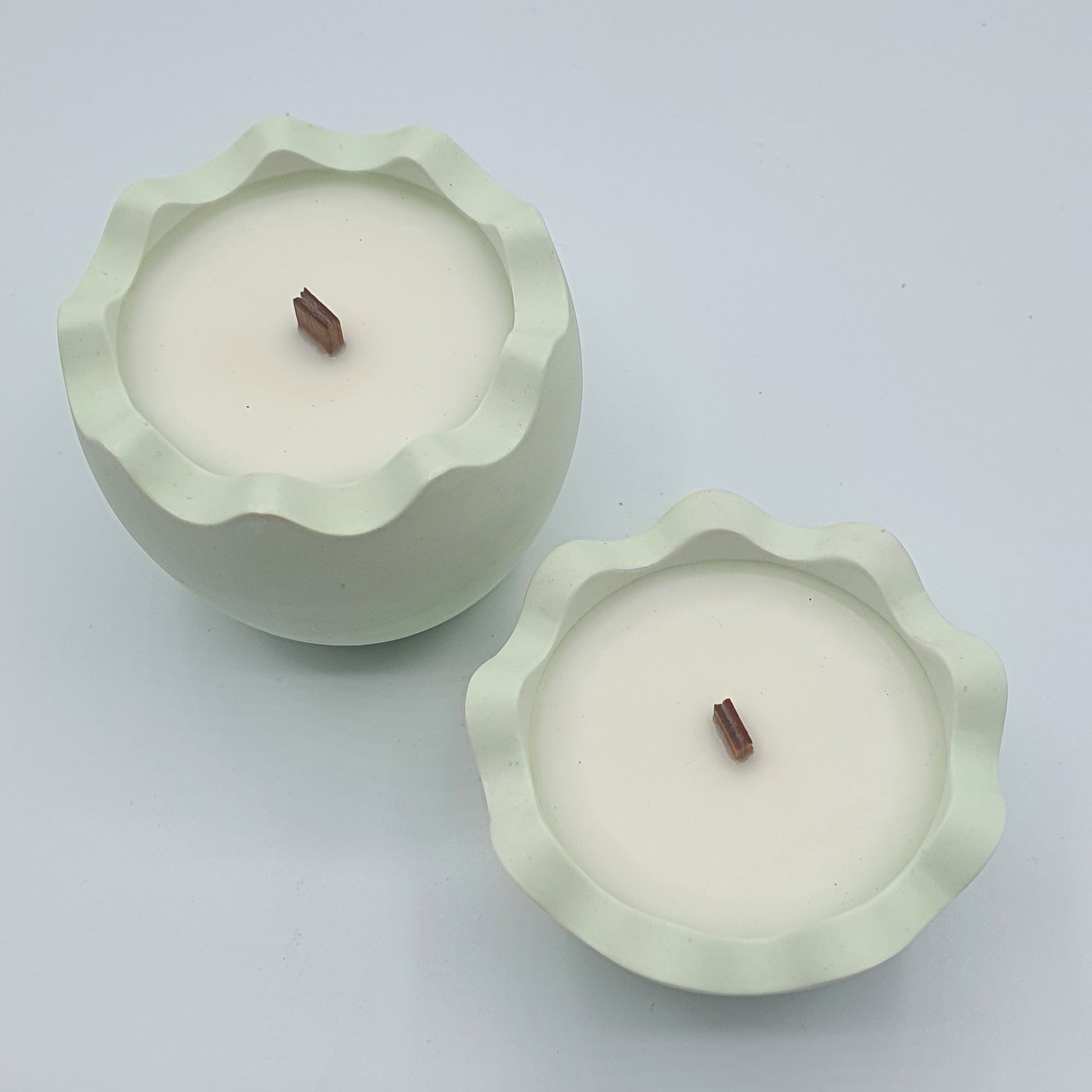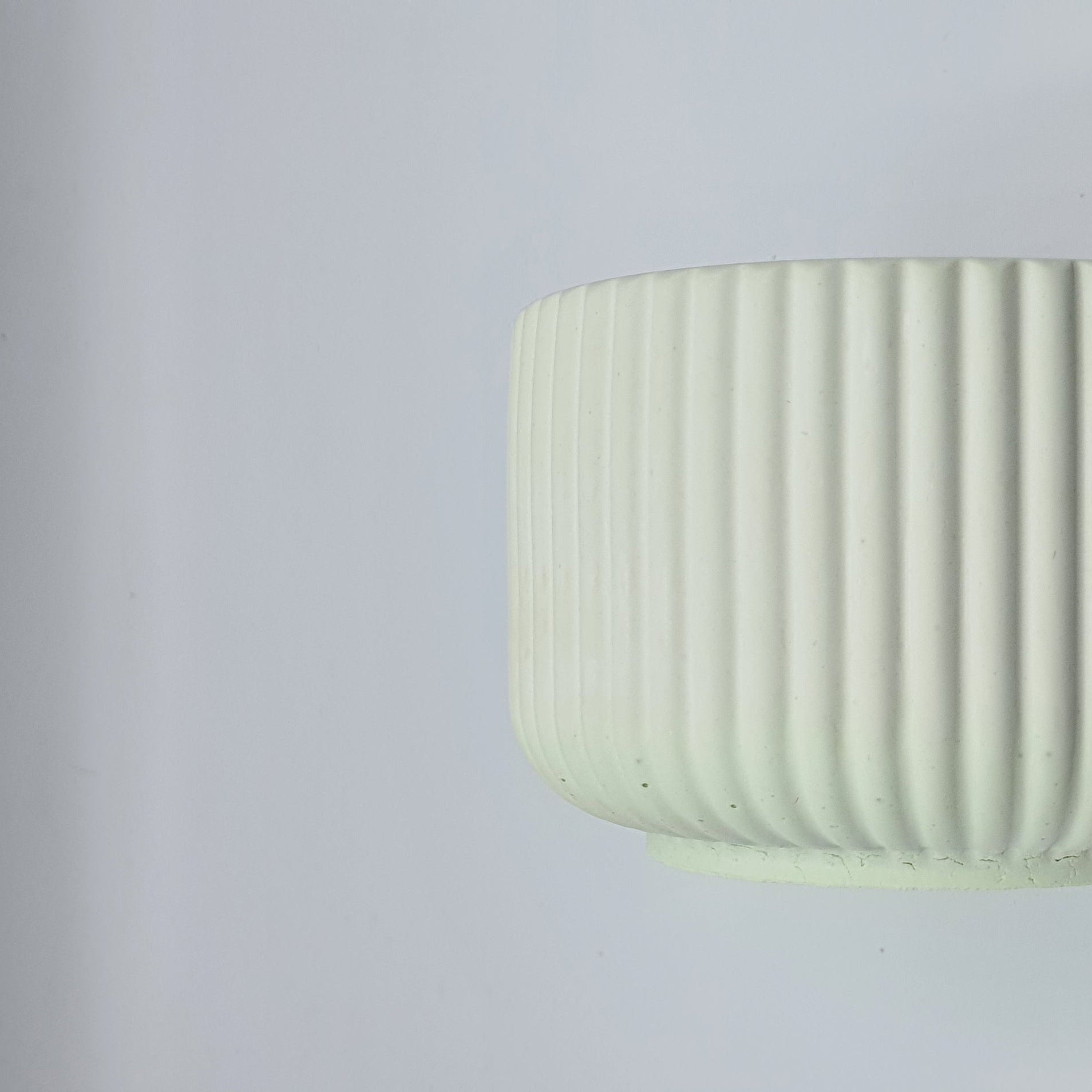 Turnată într-un vas verde pastel, în două nuanțe 🏺—diafan și gentil, ca o ținută proaspătă de podium—fiecare este realizat manual dintr-un material natural, netoxic, pe bază de calciu, unic.