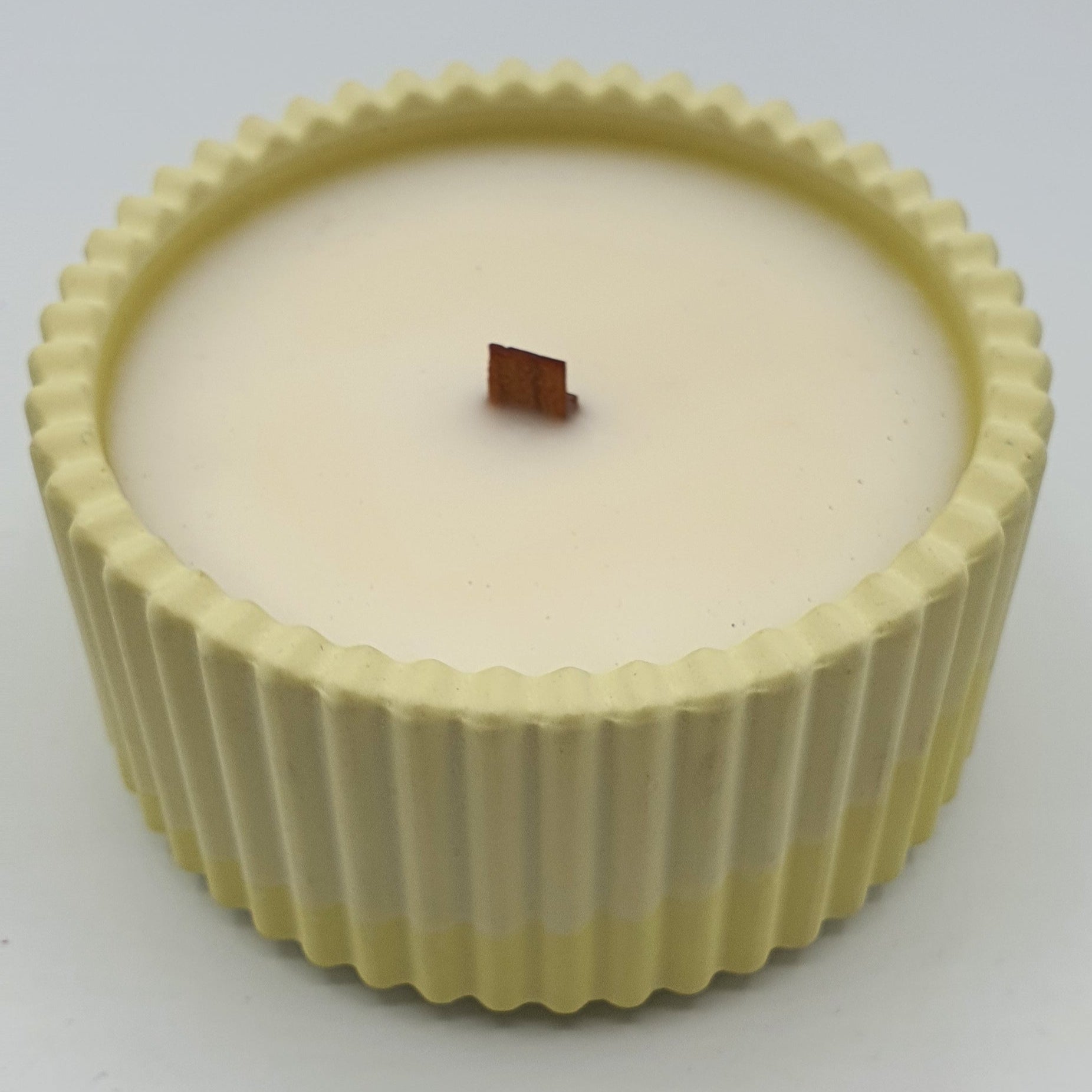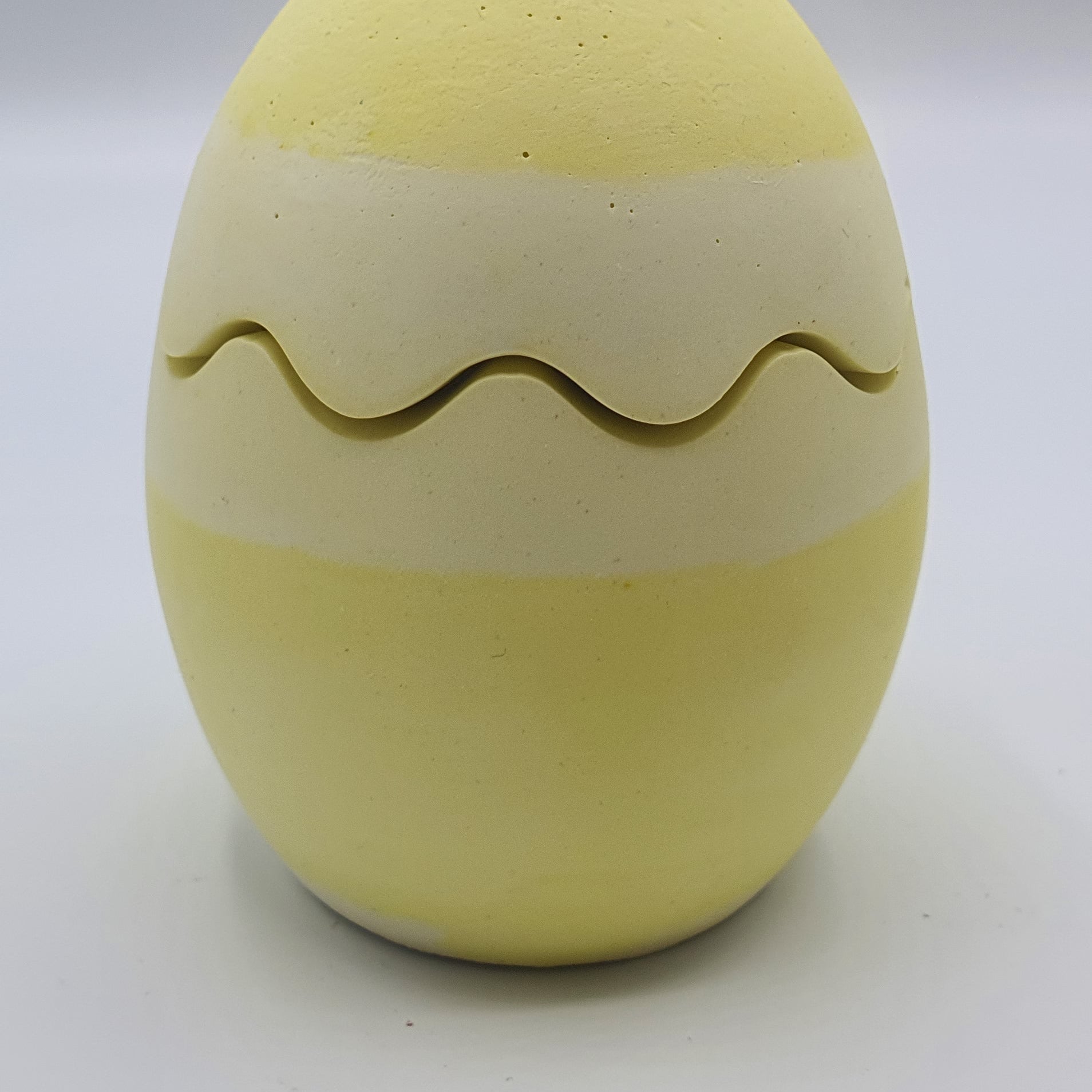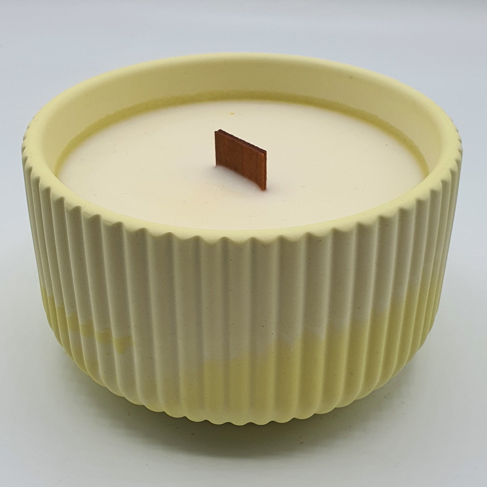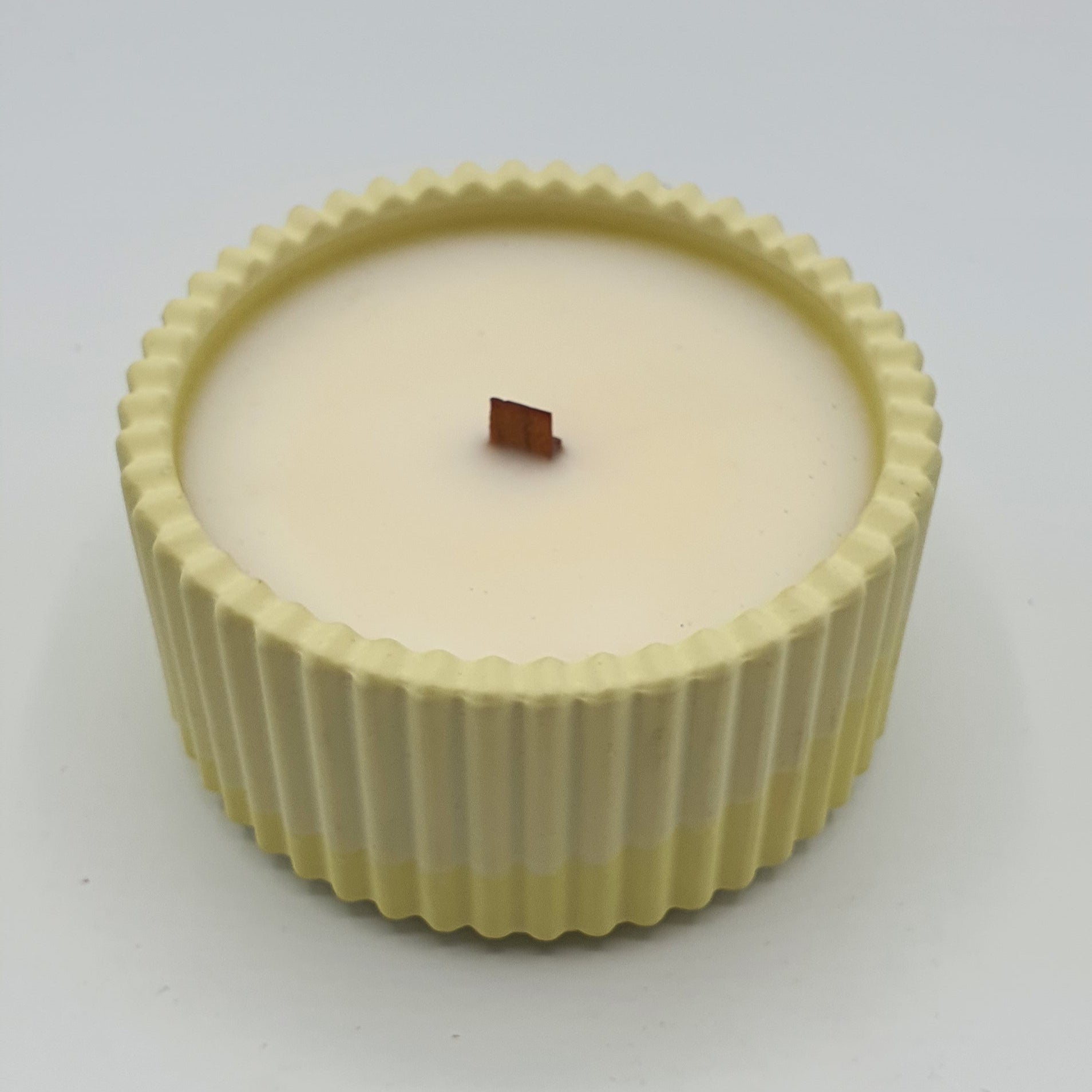 Turnată manual într-un vas pastel galben în două nuanțe 🏺—jumătate soft, jumătate vibrant—pentru că primăvara e un echilibru între soare și tandrețe. Fiecare recipient este realizat dintr-un material natural, netoxic, pe bază de calciu, și niciunul nu seamănă cu altul. ✨