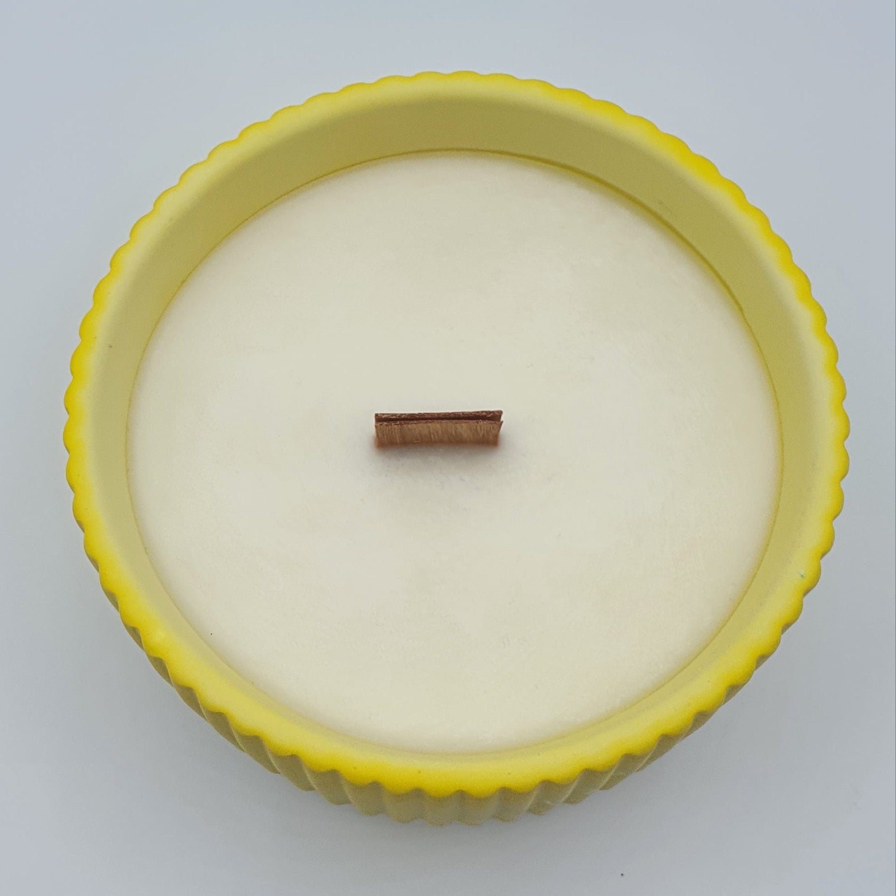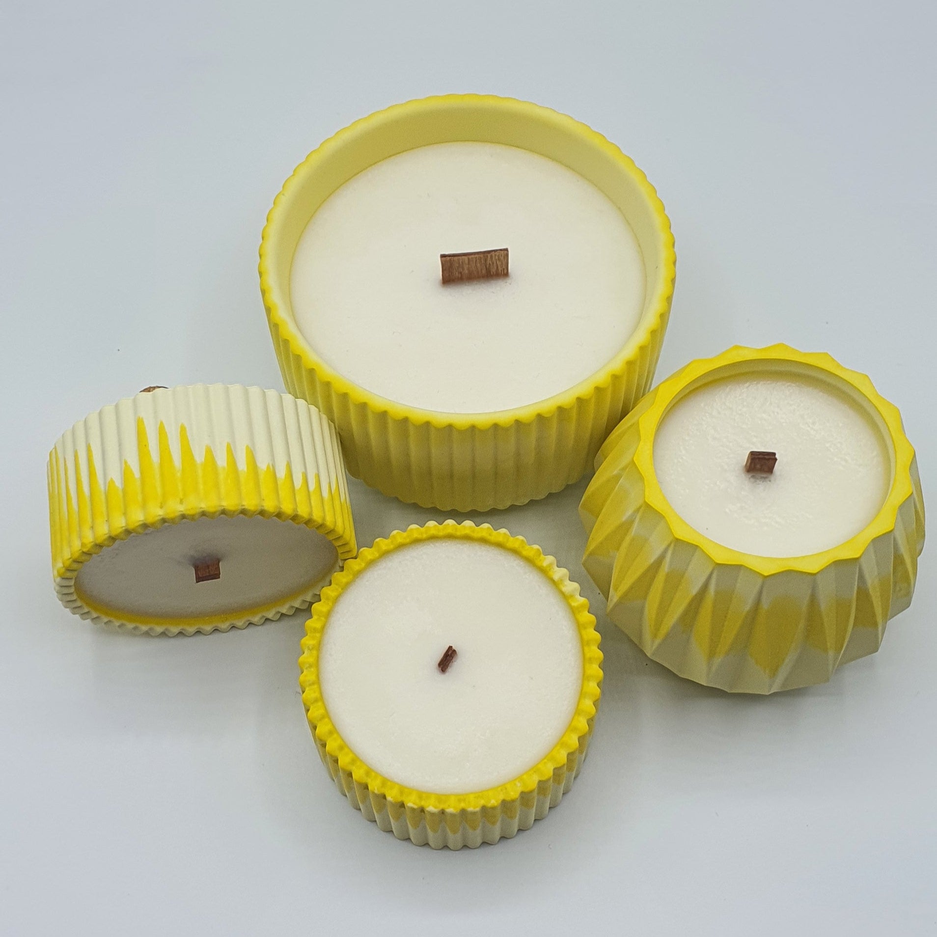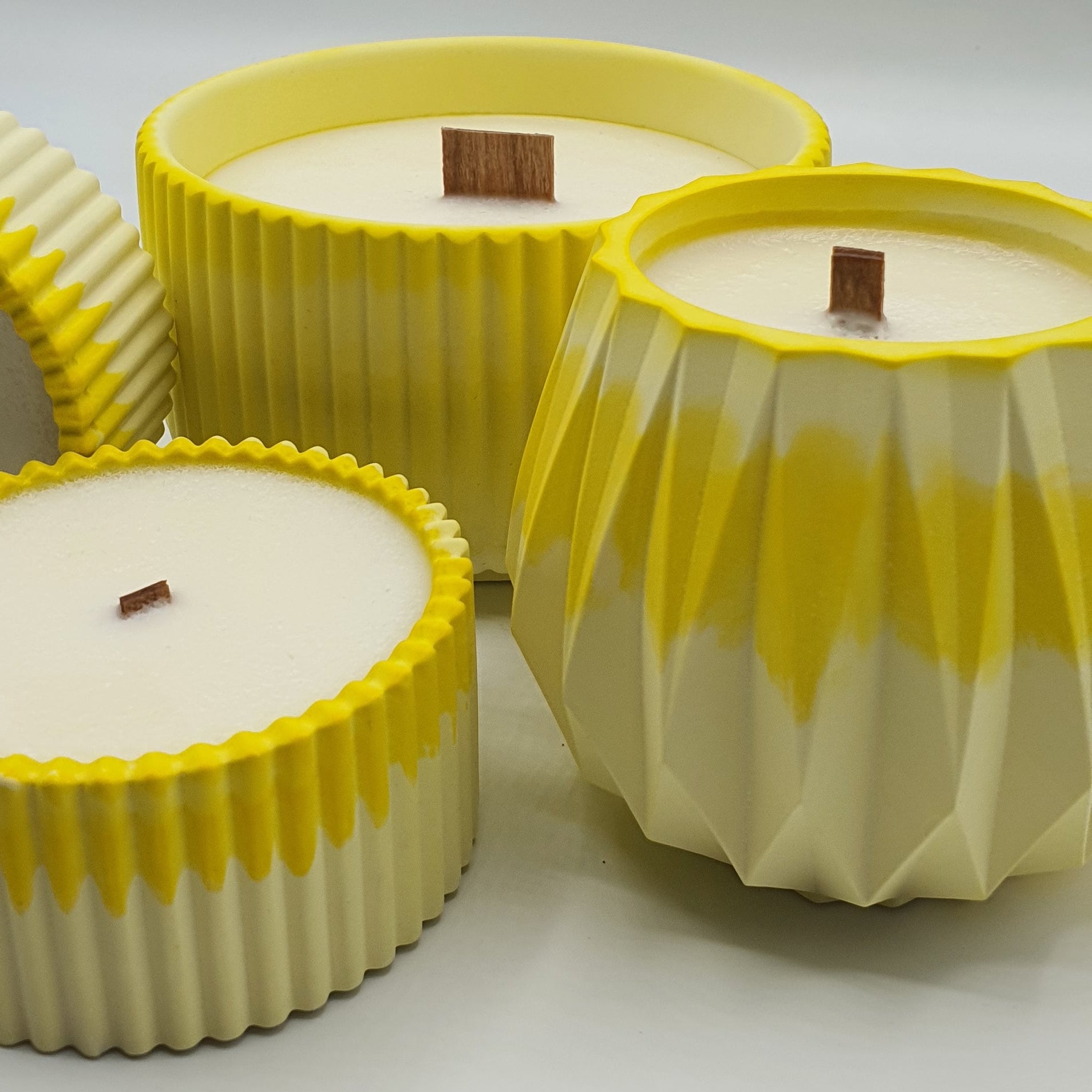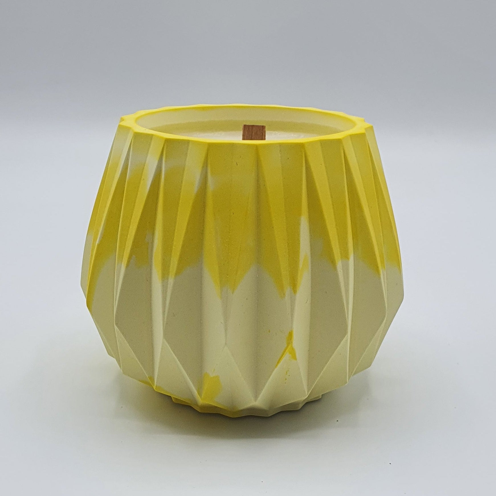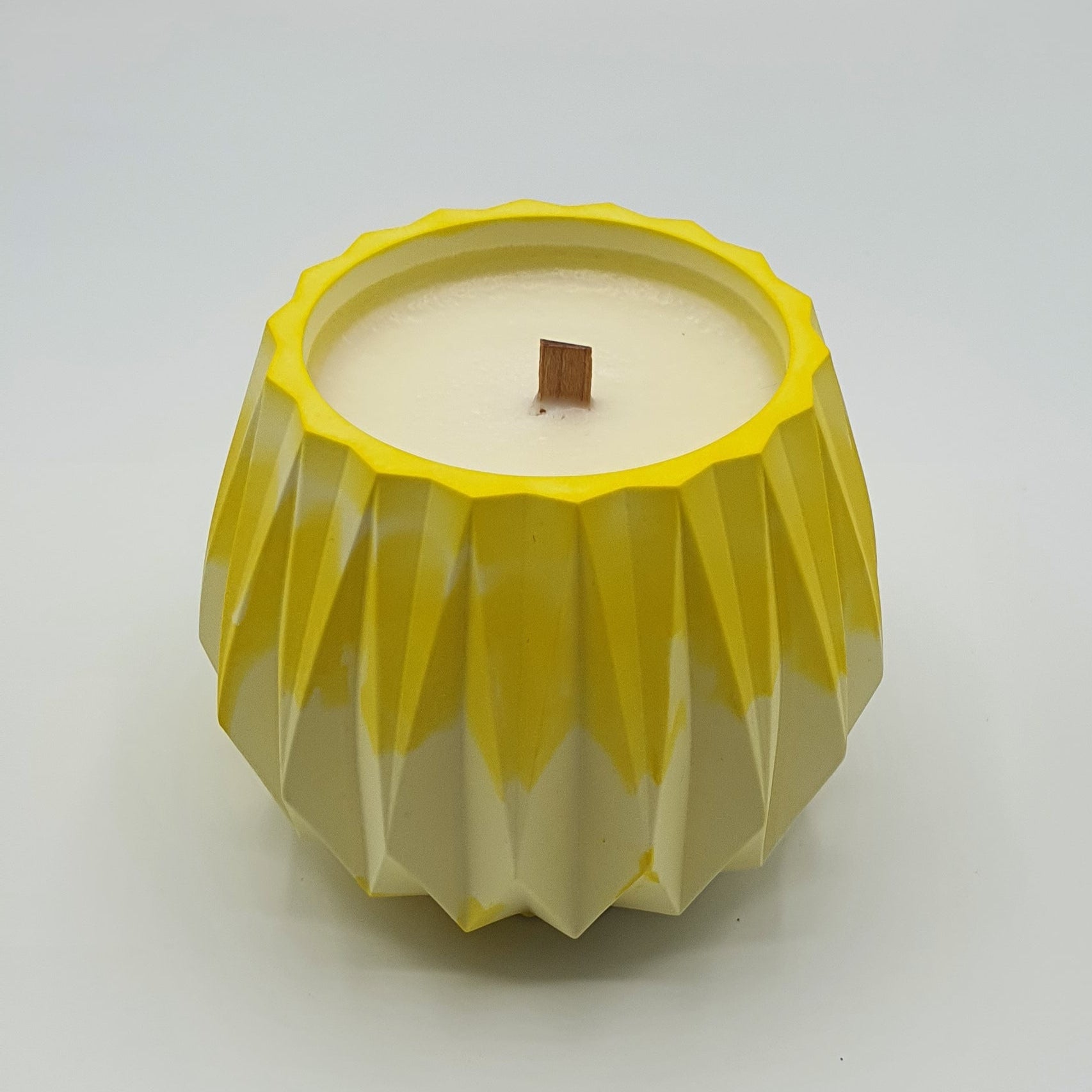 Turnată manual într-un vas jumătate galben aprins, jumătate pastel galben 🏺, dintr-un material natural, netoxic, pe bază de calciu — fiecare vas e unicat, amestecat manual, ca următoarea ta aventură.